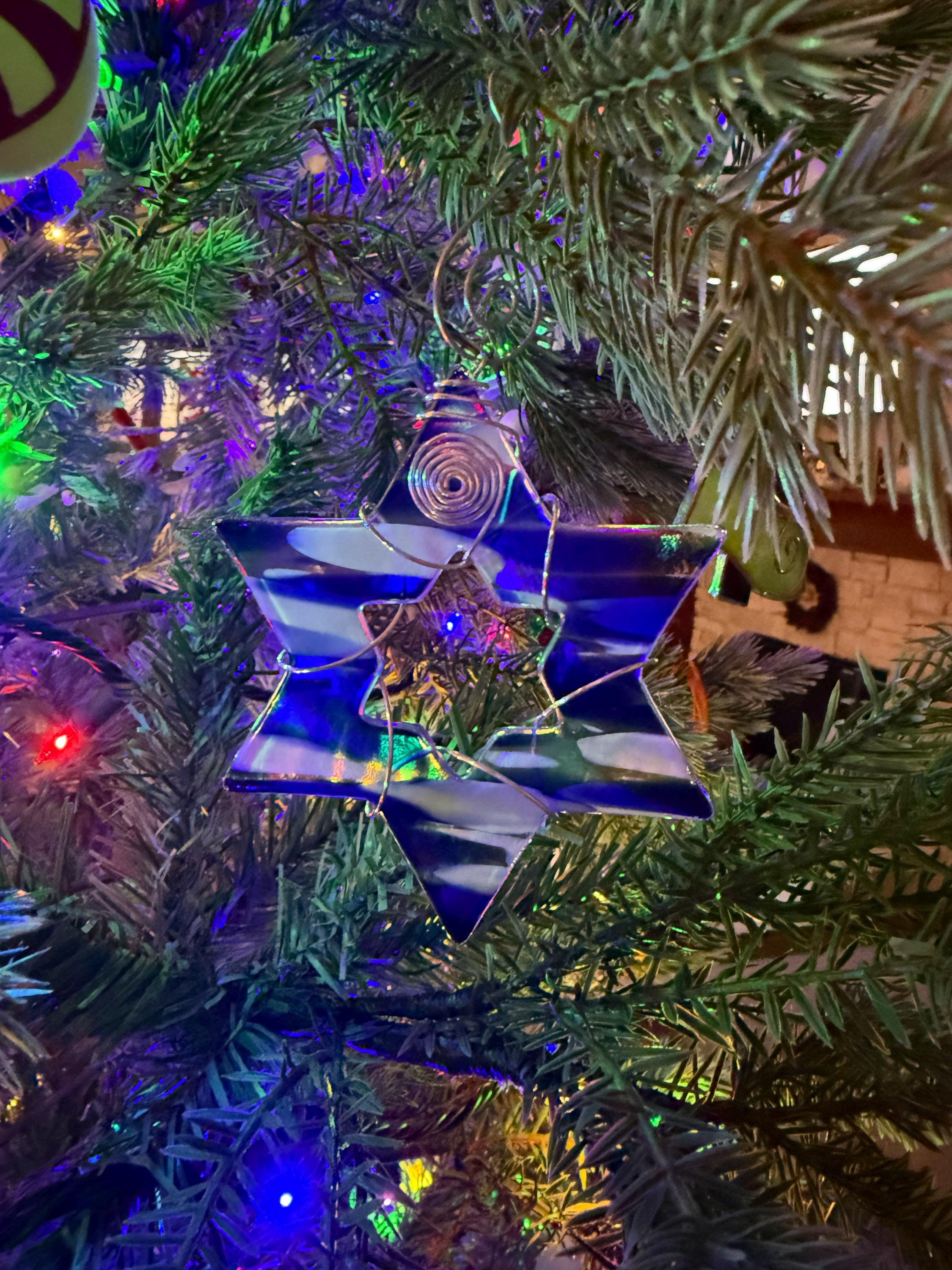 A new spin on an old favorite, I have recently updated my design on this beautiful fused glass Star of David ornament/suncatcher.