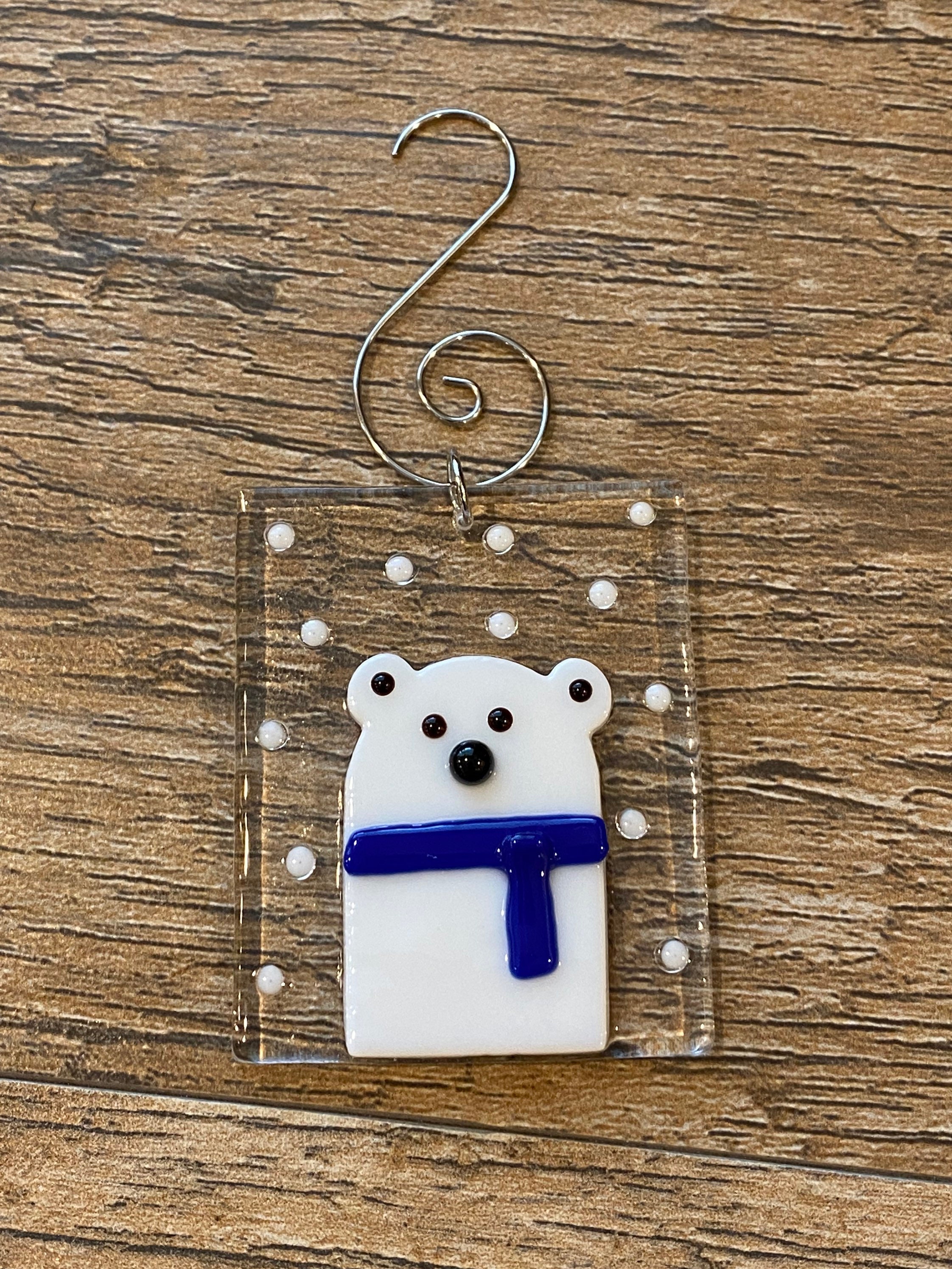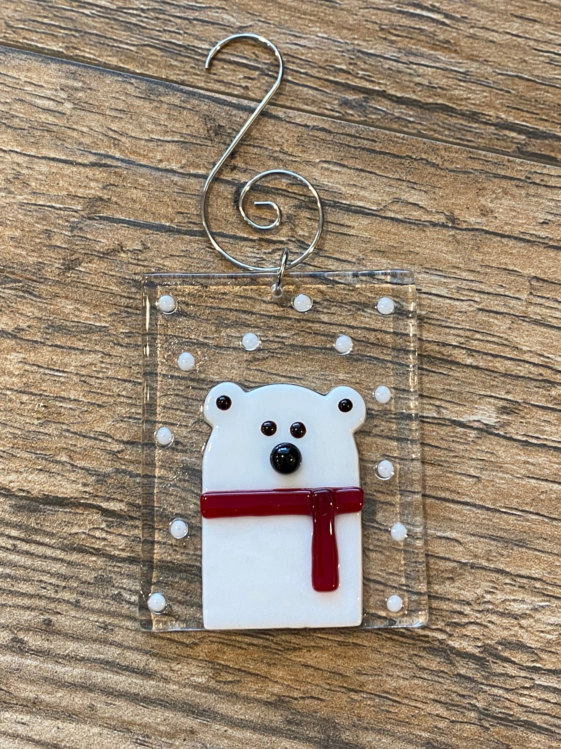 This fused glass Polar Bear ornament makes a wonderful gift, or would be a treasured addition to your own ornament collection.