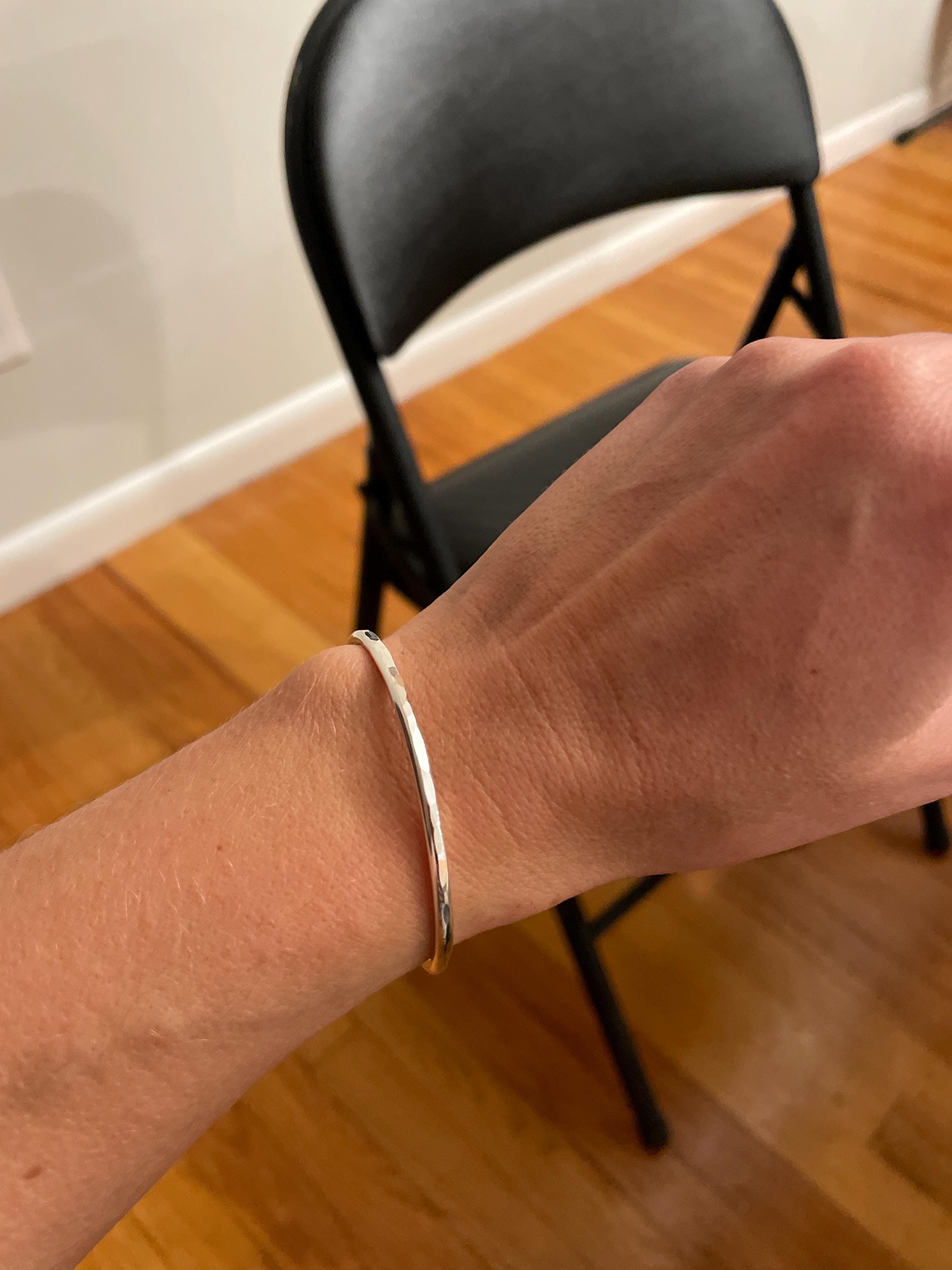 • Solid Sterling Silver, gently hammered, approximately 2.5-3mm in width